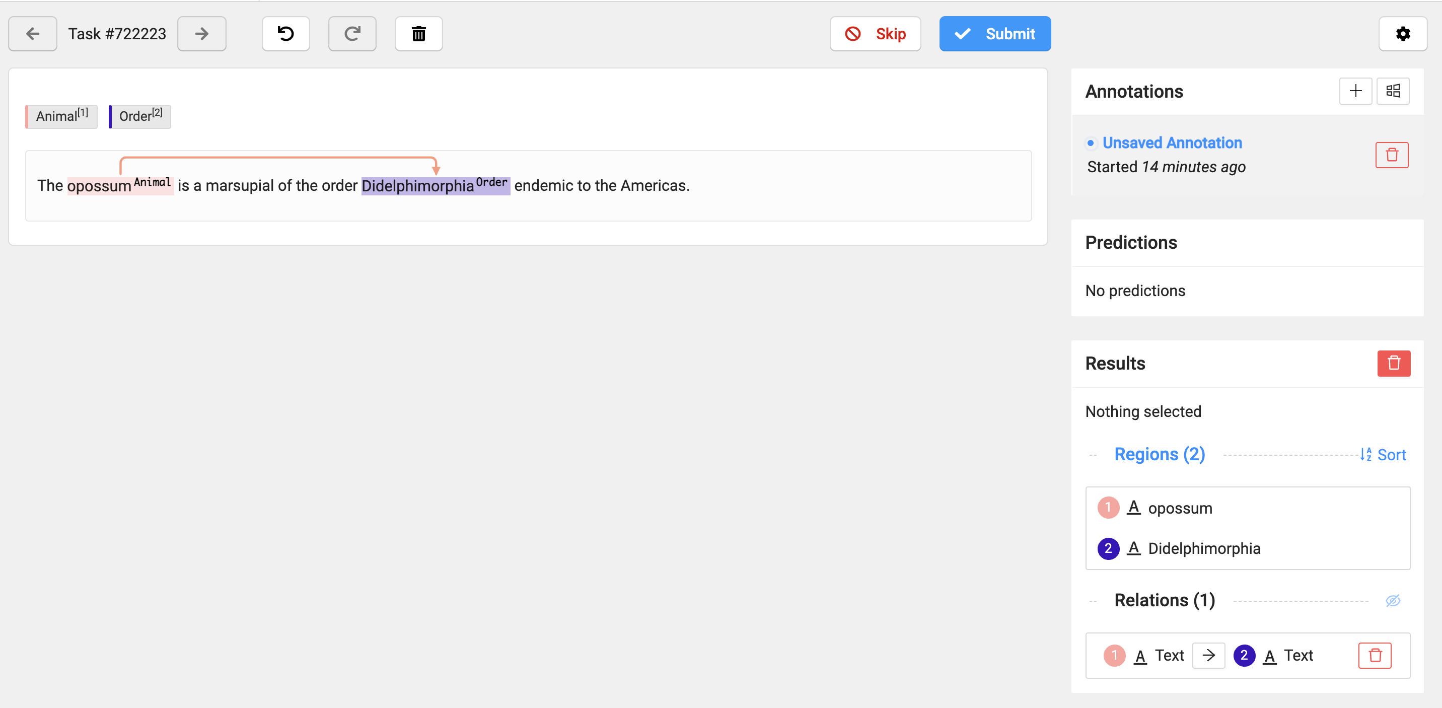 Some labeling tasks can be complicated to perform, for example, labeling that includes text, image, and audio data objects as part of one dataset and labeling task, or creating relations between annotations on a labeling task. This section includes guidance on how to perform more complex labeling tasks, such as labeling with relations, overlapping regions, selected tasks, or changing labels.